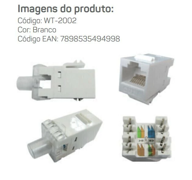 - Conector RJ45 Femea (keystone) Cat.6 Branco; - Suporta conexões de até 10 Gbps; - Suporta condutores de 22 á 26 AWG